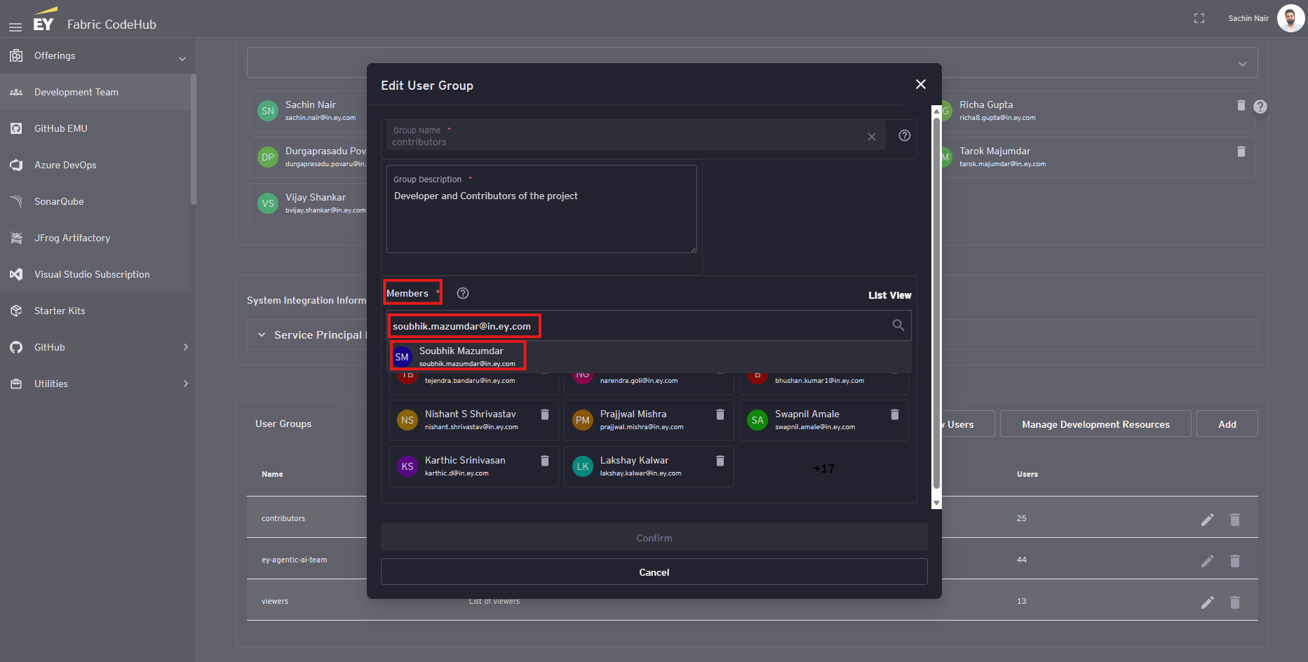 On the edit popup, under the 'Members' section, enter the email id of the user in the search section and select the user from the auto populated dropdown that appears