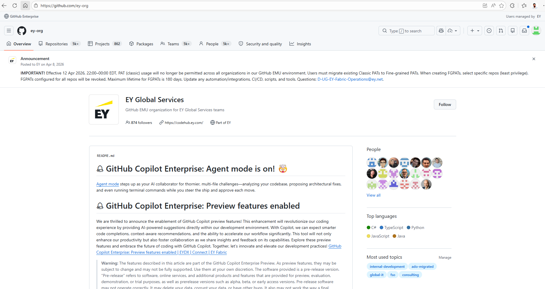 PREREQUISITE: To provide access to EY GitHub, a GitHub EMU admin is required (Needs to be part of Administrator User Group).