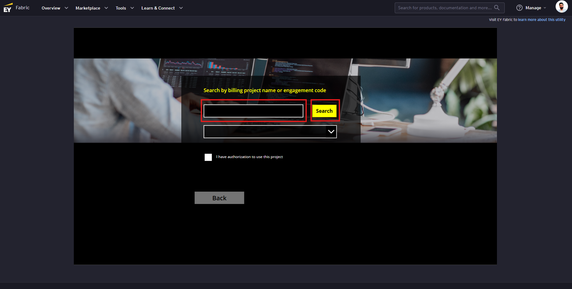 Enter the engagement code of your project in the search box and click on the 'Search' button