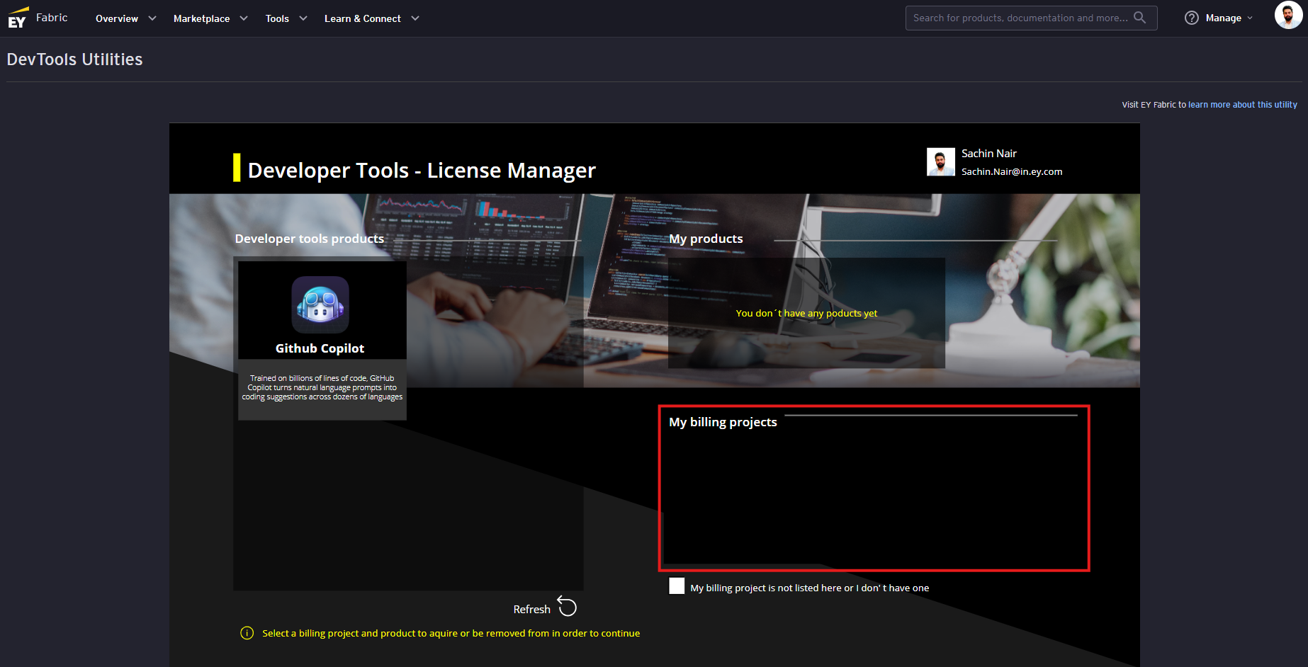 NOTE: A valid billing project is required for GitHub Copilot access (As of now, we are not sure if the Copilot cost will be charged to the project code or not).